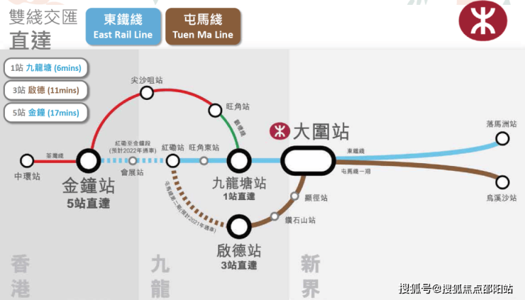 东铁线、屯马线双线交汇,通达全港各个核心区域。