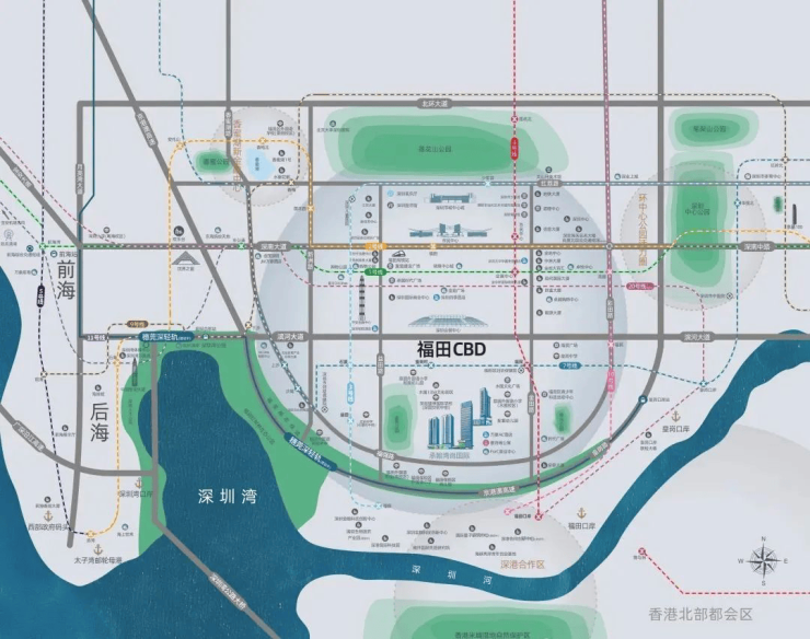 【核心枢纽】多维交通网络无缝接驳,畅享全球出行便利。坐拥四轨交汇优势,4、7、10号线已运行,20号线蓄势待发;紧邻深南、滨河双主干道及京港澳高速入口,快速通达全城;深广中轴城际、穗莞深城际铁路贯穿,未来更有港铁北环线支线规划加持;毗邻福田、皇岗两大口岸,国际交流畅通无阻;福田高铁站近在咫尺,高铁出行轻松启程,让您的世界之旅一触即发。
