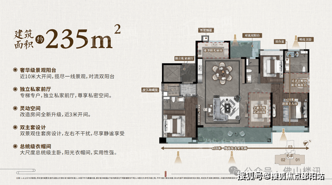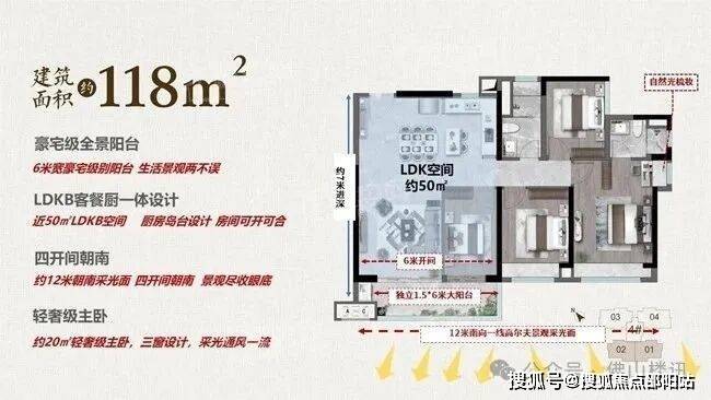 珺悦府2025年推出了新规户型,以119㎡轻奢四房为例,通过扩大阳台、优化飘窗设计,使用率提升至92%-92.6%,LDK一体化空间近50㎡,可灵活改造为143㎡尺度,满足家庭全生命周期需求。240㎡大平层采用专梯专户设计,18米超宽景观面直面高尔夫球场,70㎡超级方厅搭配南北双阳台,打造奢阔社交空间。