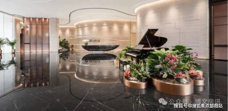 ◎超星级酒店式大堂,国际豪宅专家HWED执笔设计,以“时间艺术中心”为设计理念,注入全球奢华酒店基因的尊崇礼遇;地面进口的温德姆黑大理石、墙面的法国木纹大理石、用心铺陈的奢石仿佛就像生长在这里一样,整个大堂地面如同湖面,巴西黑金石打造的接待台如同一叶扁舟停靠在湖泊上。