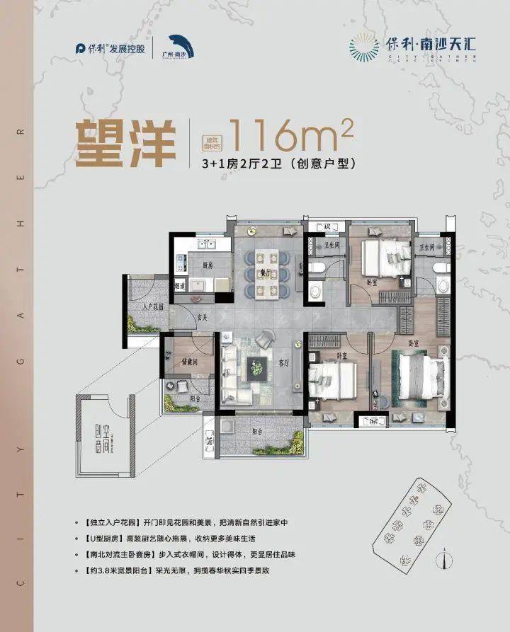 保利南沙天汇主推78至116平方米的三至四房户型,适合家庭居住。每个户型设计合理,注重空间利用,室内通风与采光条件都得到了优化。精装修交付使得购房者可以省去装修的麻烦,快速入住。户型布局采用现代化设计,空间规划合理,满足不同家庭成员的需求。特别是大户型户型,适合追求更高居住品质的家庭。