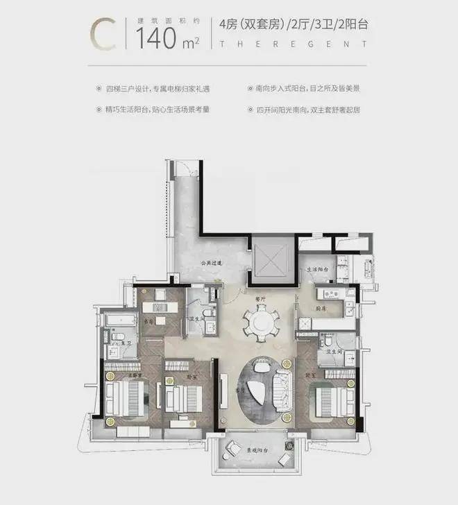 【C户型】约140㎡南向园景大宅 ✨✨南天名苑售楼处电话:400-825-6030【售楼处电话已认证】✨✽✽✽✽