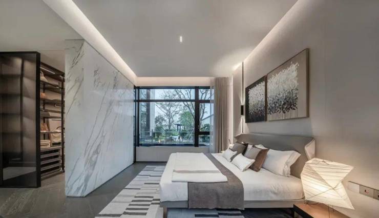 三层是约44㎡的奢华主卧套房,设有步入式双排衣帽间,还有大浴缸。还配有露台花园,可观景,畅谈,。具有优质的生活体验,又充分保证了私密性。