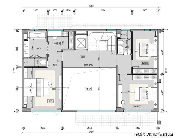 二层卧室布局错落有致,挑空区丰富空间层次;