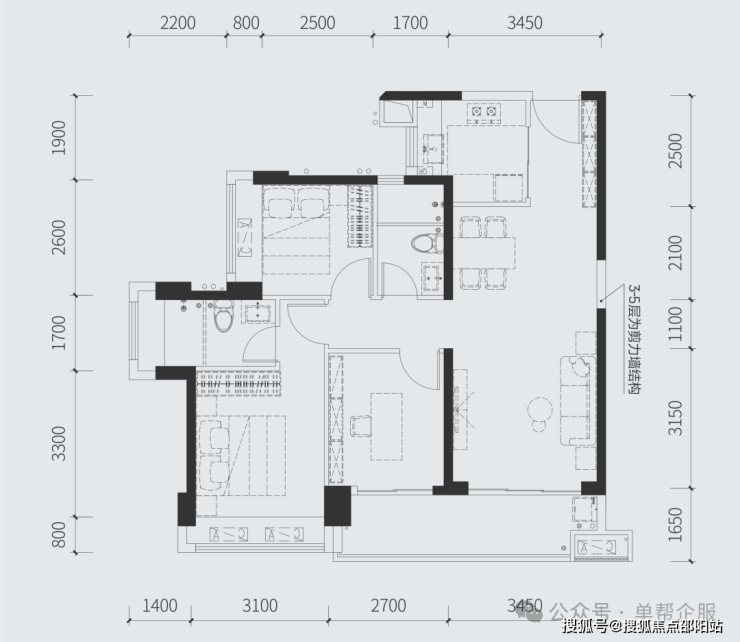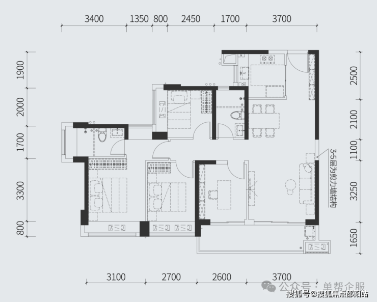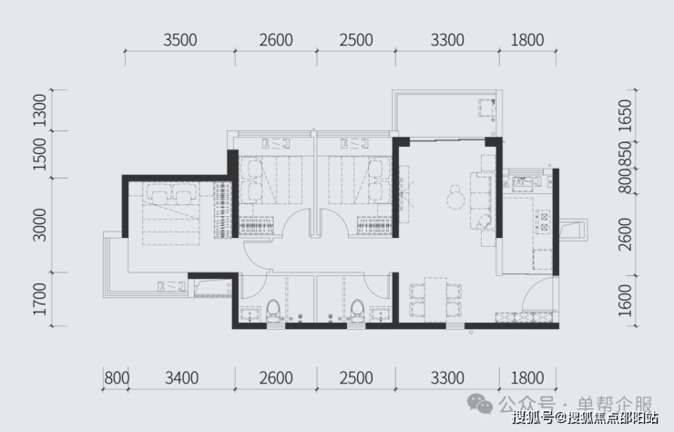 建面88㎡三房两厅两卫全明户型 纳阳光清风入怀主卧套房设计 尽显尊贵从容