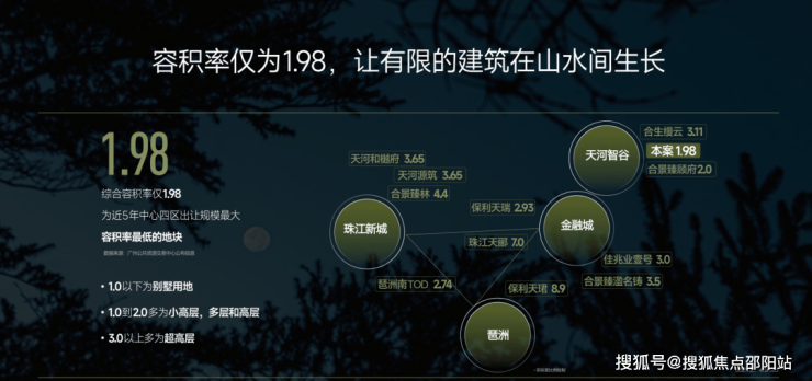 【樾·低密】天河难再有的低密住区,板块综合容积率仅1.04,让有限的建筑在山水间生长,项目容积率仅1.98,是近5年中心四区出让规模最大,容积率最低的地块,宛如在森林里种房子