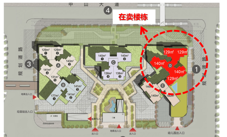 珠江天骊共建5栋塔楼,都是32层高,由于小区北向临近中山大道,因此项目北向房间会有一定噪音,南向望小区花园会比较安静。