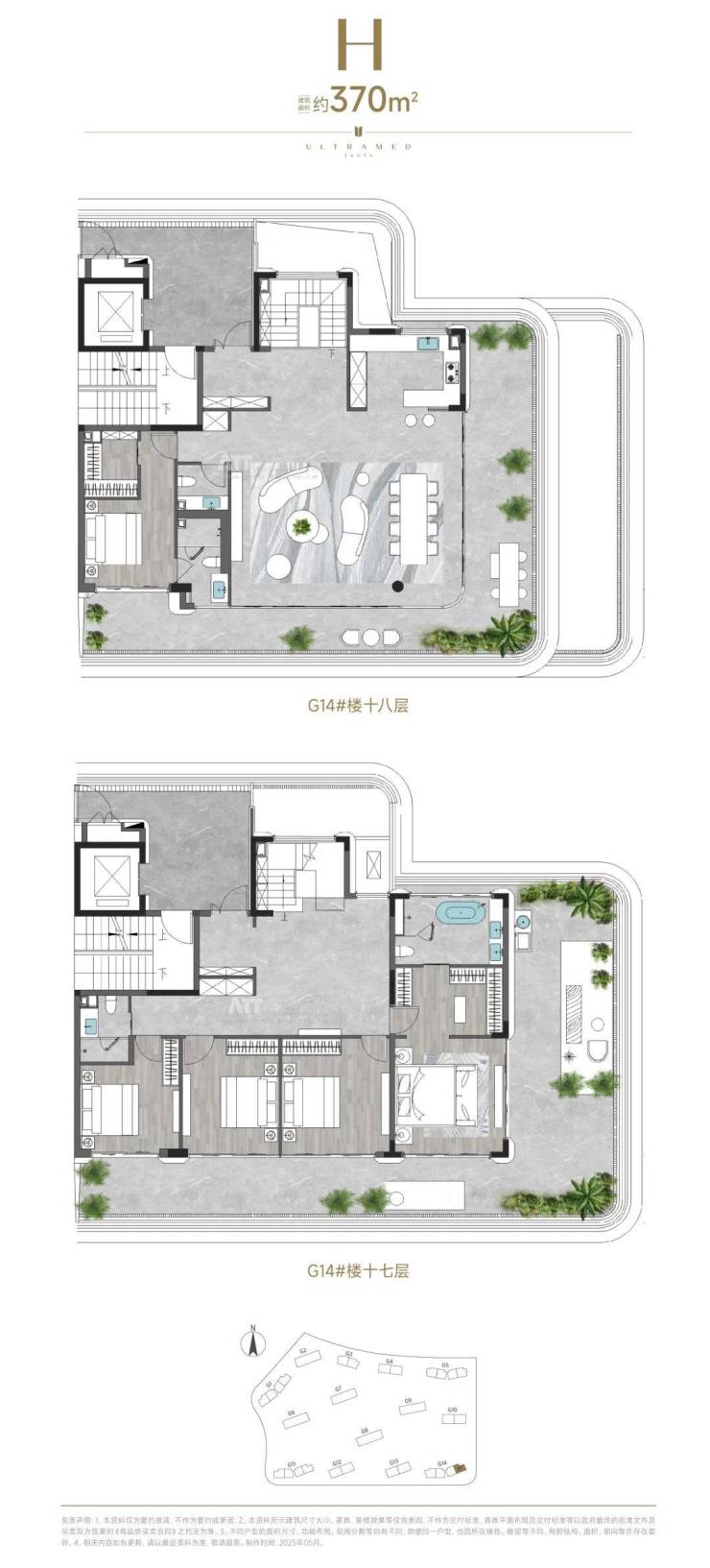 超级地中海・憘悦为了保持圈层的纯粹性,将最小户型定在 188㎡,这在常见的豪宅项目中,几乎是顶配的存在,可在这儿,也只能算是入门级。项目最大户型可达 610㎡,全盘仅有 5 套,配备天际泳池、环绕阳台,两梯一户,每一套都拥有绝佳视野,稀缺性拉满,是真正为少数人打造的顶级居所。