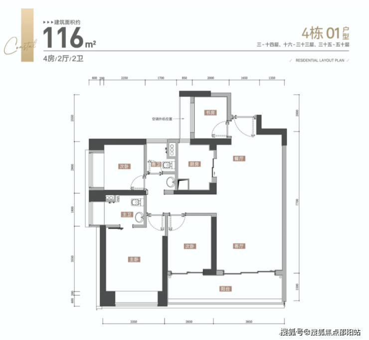4栋、5栋:4梯5户,层高3.1米,01-02户型116平3房2卫,03、05户型142平4房2卫,04户型120平3房2卫;