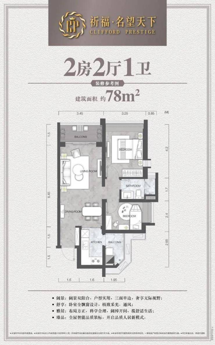 项目点式布局,风车型设计,户户南北对流,三面单边,户型涵括78-222㎡二房至五房,以超前远见,未来豪宅生活理念;