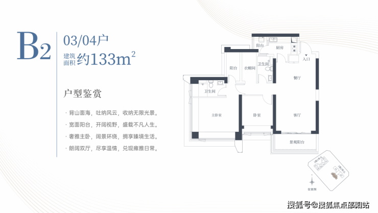 1栋二单元B2户型:面积约为133㎡
