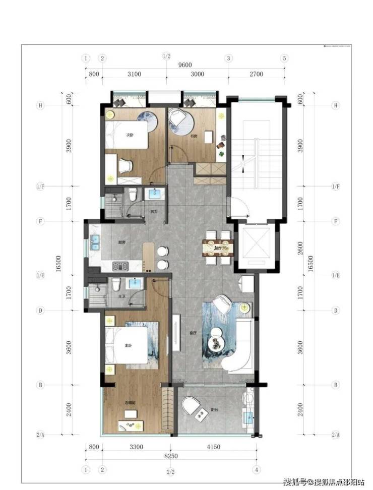 3.下叠:建筑面积约100-110㎡,四房三厅三卫。