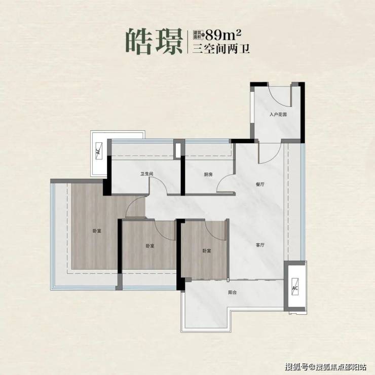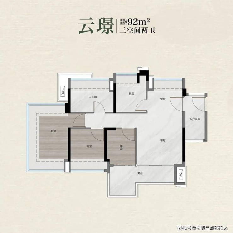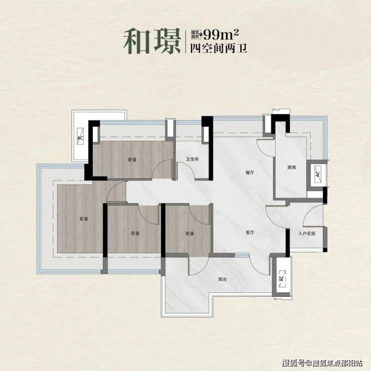 产品亮点:新规高使用率(据称超 100%),全屋飘窗,搭配入户花园与大面积阳台,空间通透。