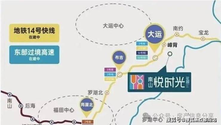 14号快线:东部首条快线,时速达120公里,预计2022年9月底通车。南山悦时光毗邻嶂背站,1站大运,8站福田,30分钟直抵福田中心。