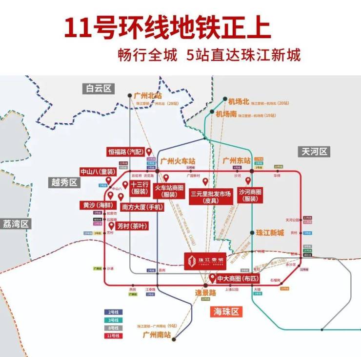 此外,项目15分钟生活圈内,坐享体育中心、珠江新城、客村、江南西、琶洲会展等6大商圈,庞大商业配套无与伦比。11号环线地铁正上盖 - 5站直达珠江新城广州首条环线地铁11号线逸景路站正上,负一层与地铁站联通,连接天河、越秀、荔湾、白云和海珠中心五区,串联广州十大专业市场,5站直达珠江新城,预计2022年底通车,届时珠江壹號业主将畅享便捷出行。