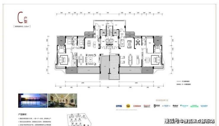 535m²户型图:五房四厅五卫 南向通透(10号楼,毛坯带泳池)