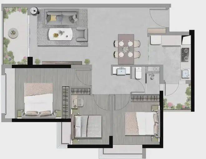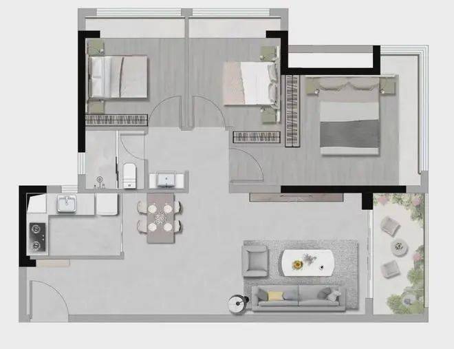 72㎡ 2房2厅1卫