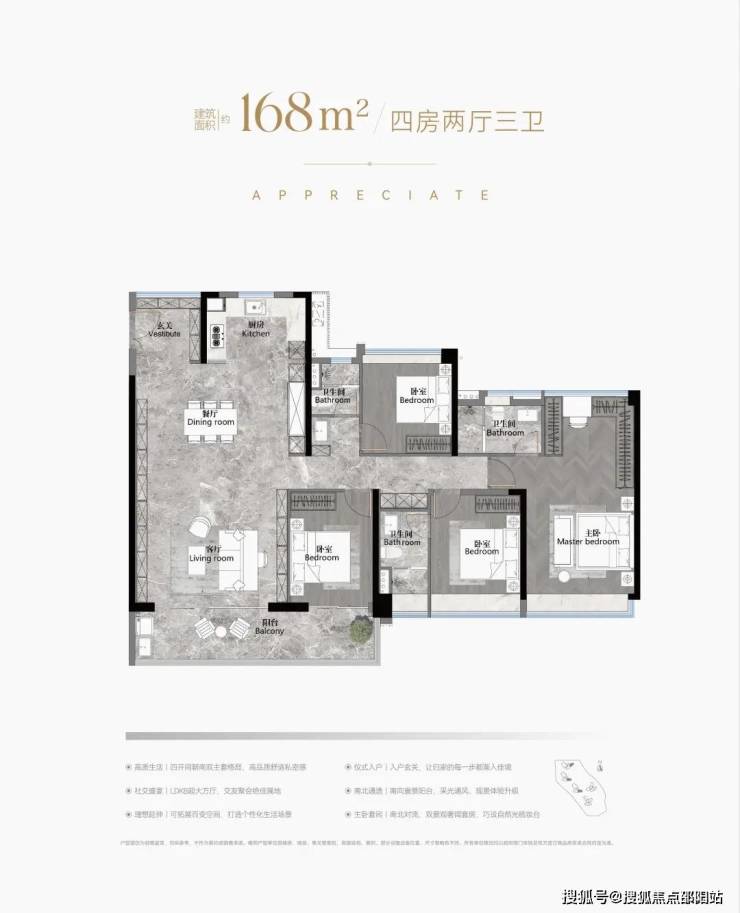 ·整体围合式布局,确保每户拥有南向景观,通风采光俱佳