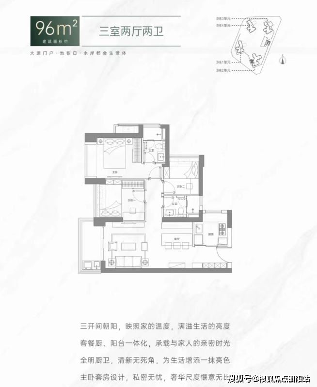 项目将推出75㎡-2房1卫,95-102㎡-3房2卫,120㎡-140㎡-4房2卫户型,本次清水房交付,