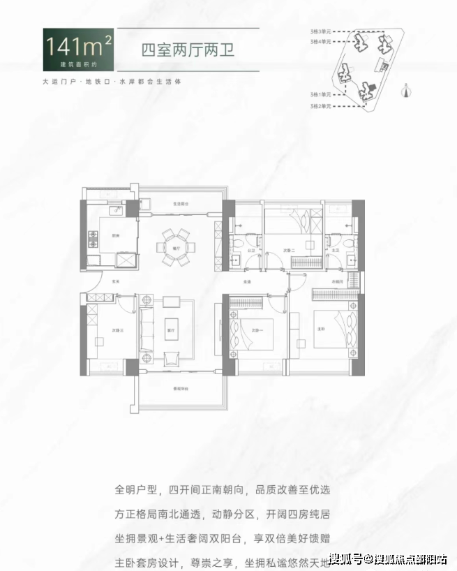 总户数1440户,其中套内建筑面积<90㎡的有1088户,占比75.56%;规划停车位1291个。