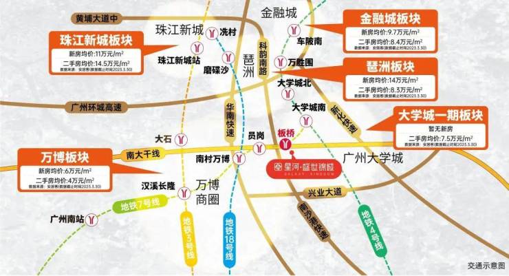 南沙港快速、新化快速、华南快速,畅达琶洲、金融城、珠江新城,30分钟CBD菁英生活圈。