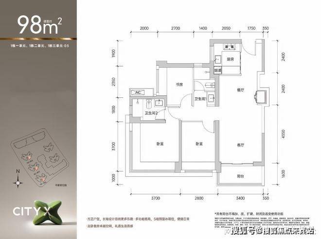 一栋一、二、三单元:05号户型(03对称户型)-98㎡