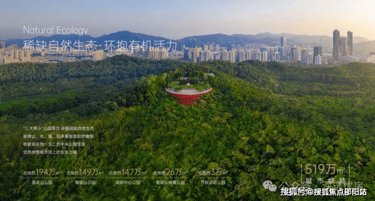 深业上城“缝合城市”创新理念,斥巨资打造两座生态廊桥,步行10分钟直通莲花山、笔架山、中心公园,纵享约4700亩城市绿肺,让城市与自然从容交汇。
