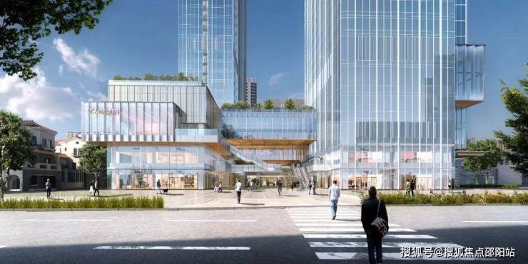 项目设计融合滨海元素特色,注重多元化空间布局及人文体验设计,联动生活、城市与自然,进一步提升周边社区生活与商业品质。项目将公共配套区域与酒店塔楼大堂进行形体错动抬升,构建多首层开放活力街区,打造成具有城市活力的商业综合体。