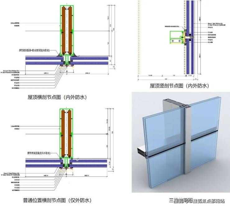 酒店的屋顶幕墙作为悬挑装饰性幕墙,附属在主体结构上,由于上部空间的完全开放,因此需要幕墙系统具有内外防水的特性。