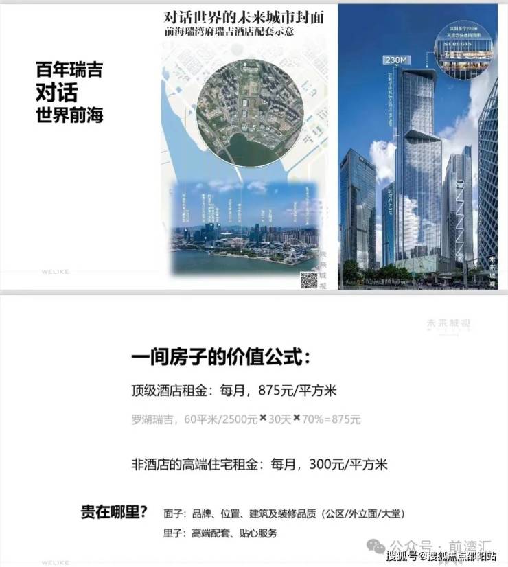 深圳华侨城.瑞湾府(别名瑞湾公馆)位于前海宝中,项目东侧及东北侧临近海滨广场,距欢乐港湾1公里,是集企业会馆、奢华酒店、精致商业于一体的垂直综合体。项目建筑高度约230米,占地面积约7700㎡,拥有建面约130-360㎡的珍藏大平层,配备高端商业瑞湾荟和百年奢华品牌瑞吉酒店。周边交通便利,配套齐全,是深圳大湾区的商务新地标。