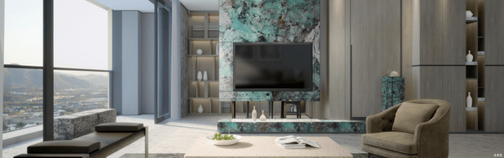 公区采用大量珍稀天然石材,纯天然且手工打造,延续室内工艺风格,营造典雅调性,彰显匠心品质。