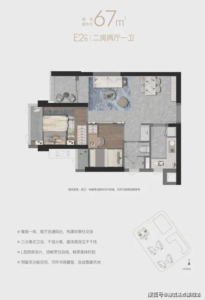 【E2户型67㎡二房两厅一卫】