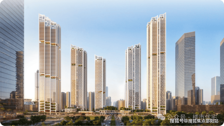 项目容积率7.59,限高250米,规划5栋超高层住宅,采用全玻璃幕墙设计,实用率高达92%以上,主力户型200㎡以上大平层。