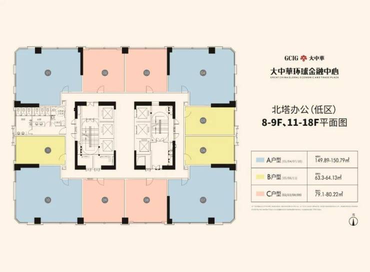 建面约63-150㎡灵动办公空间,方正实用