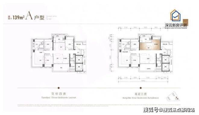 面积:139-176-194㎡四房