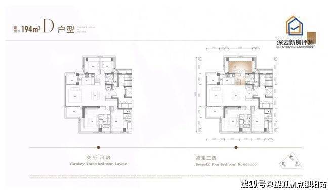 176㎡、194㎡户型标准层高约3.3米