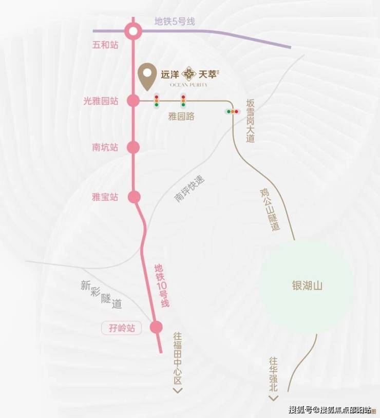 交通上,远洋天萃家门口就是“福田专线”——10号地铁线“光雅园站”B出口,1站到五和枢纽站,可换乘5号地铁线/深大城际,3站可到龙华深圳北站,3站到福田、4站到南山。