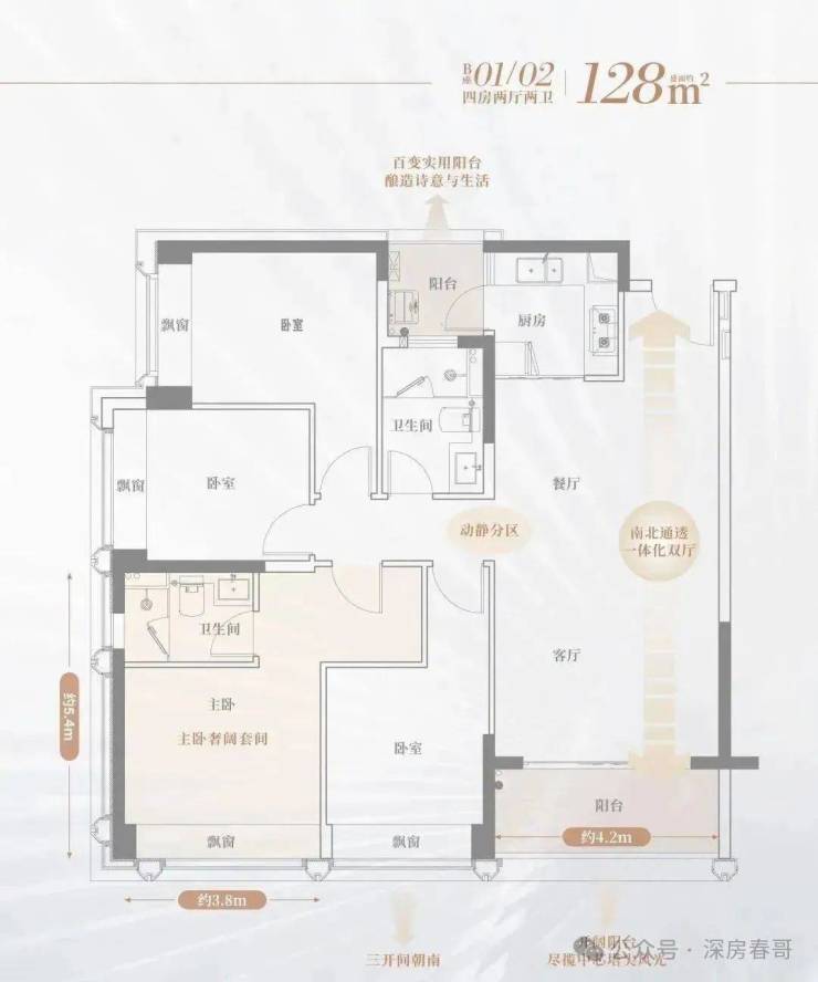户型南北通透,采光充足。主卧配备独立卫生间和衣帽间,提升居住品质。