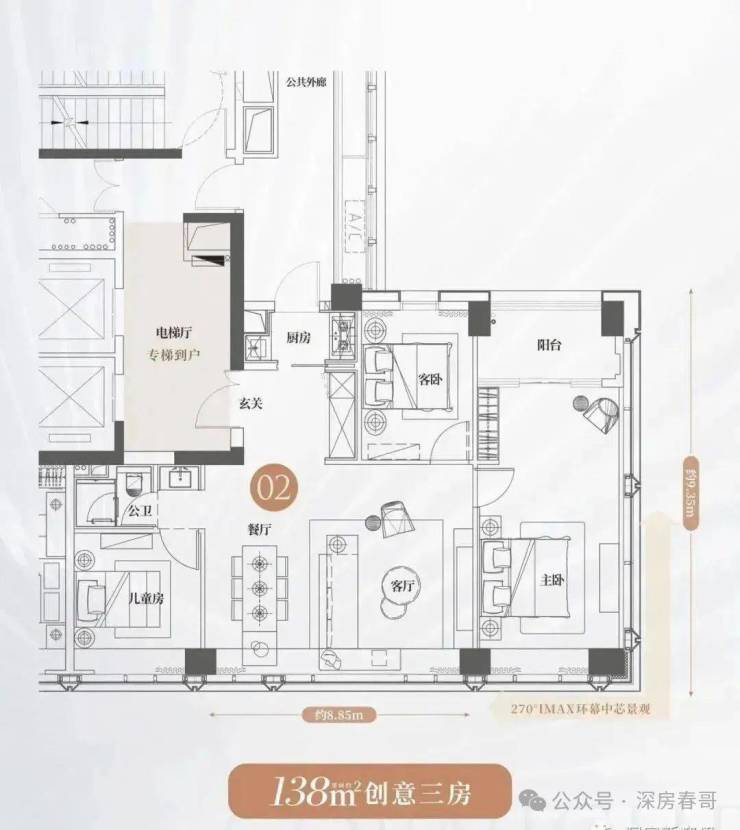 框架结构设计使得户内空间可灵活改造,满足不同家庭的需求。138平方米户型专梯入户,主卧套房设计,居住舒适性极高。