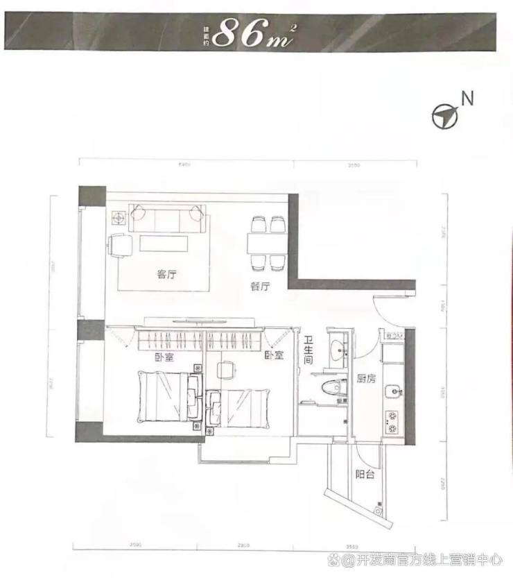 加福华尔登府邸是一个纯住宅项目,居住氛围纯粹,主推建面约86平大两房,建面约89平三房,和建面约125平大三房。