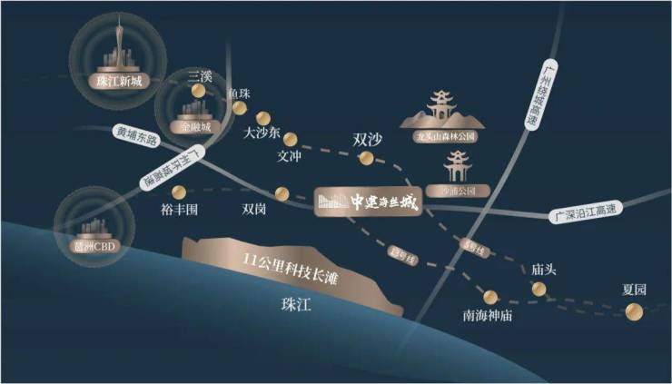 中建海丝城作为双沙村旧改首期商品房由中建八局与知识城集团联合开发,总投资 289.3 亿元、总建面约 240 万方,占位黄埔海丝城板块核心,紧邻地铁 5 号线双沙站(步行 50 米)与 13 号线双岗站(步行 8 分钟),形成 “双地铁 + 双 CBD” 通勤格局,2 站达鱼珠 CBD、5 站到金融城、10 站直通珠江新城,日均通勤时间控制在 30 分钟内,精准匹配天河上班族需求。