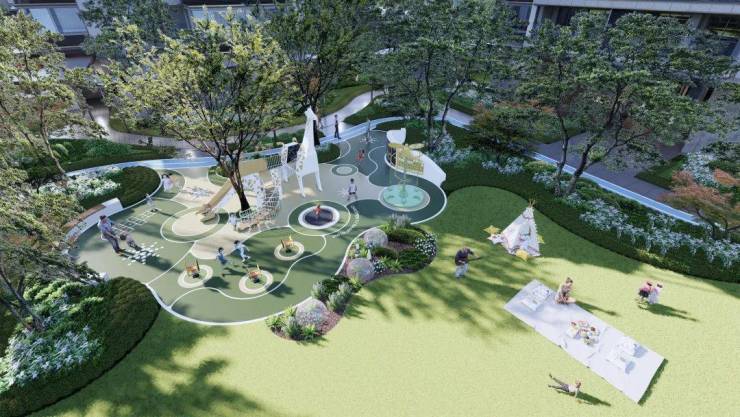 两大草坪:内部旱溪草坪、阳光草坪,给予业主更多邻里、家庭、亲子互动休闲的自然空间,同时让视野更加开阔。