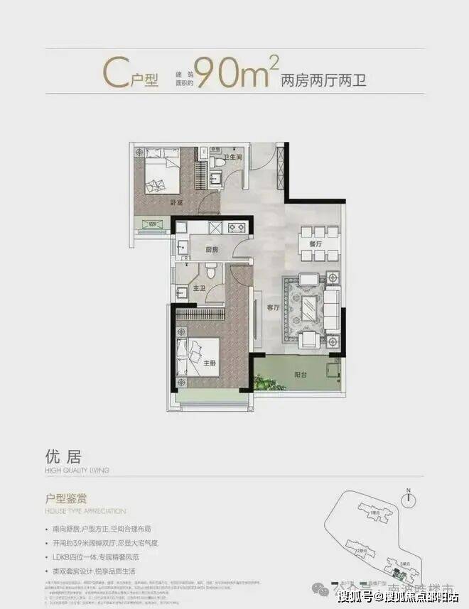 2. 90㎡以下户型,共170套,满足单身人士或新婚夫妇的刚需需求,空间布局合理,功能齐全。