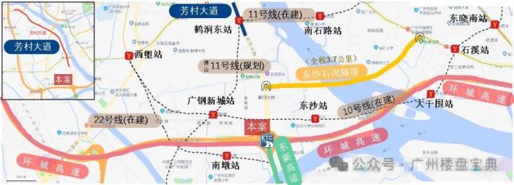 "该项目地理位置优越,距离繁华的10号线广钢新城站仅约1.2公里之遥,步行仅需短短15分钟,让您轻松畅享城市便捷生活。此外,距离22号线南漖站也仅有约1.6公里,步行约19分钟即可到达,交通十分便利,无论是出行还是购物都无需担忧。"