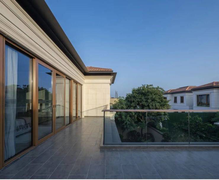 柚木是典型的热带树种,其含蓄的纹理却有一种性感的光泽,质感里透出一种野性的美好。考虑当地强日照多雨的气候条件,设计用仿柚木色铝合金代替柚木,提升建筑观感的同时,解决了柚木构件不耐久的问题。