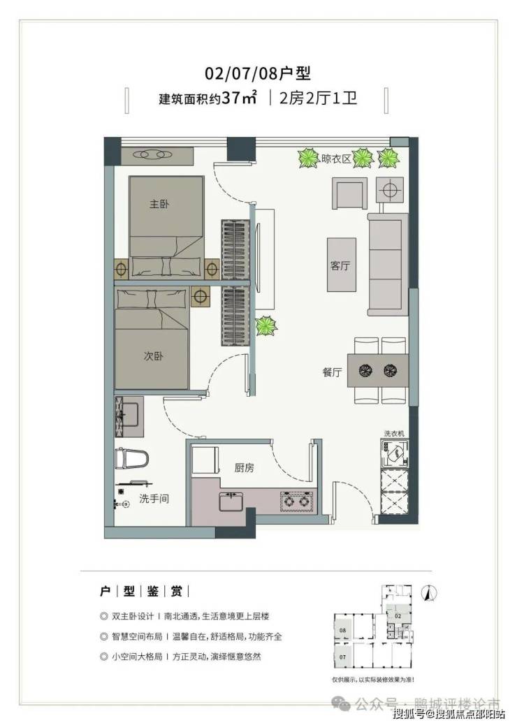 02/07/08户型(2房2厅1卫)建筑面积约:37㎡,套内使用面积约:52㎡