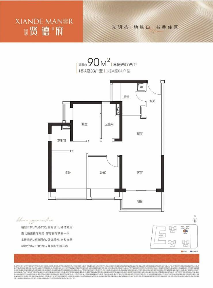 户型设计非常有特色,90㎡三房两厅两卫户型为多数开发商都在做的经典户型,属于老百姓都认可的居家典范户型。