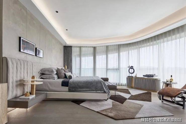 而主卧和客房均为带大卫生间的套房设计,尺度均约为50㎡左右,居于其间,人生好像到达了“高潮”。