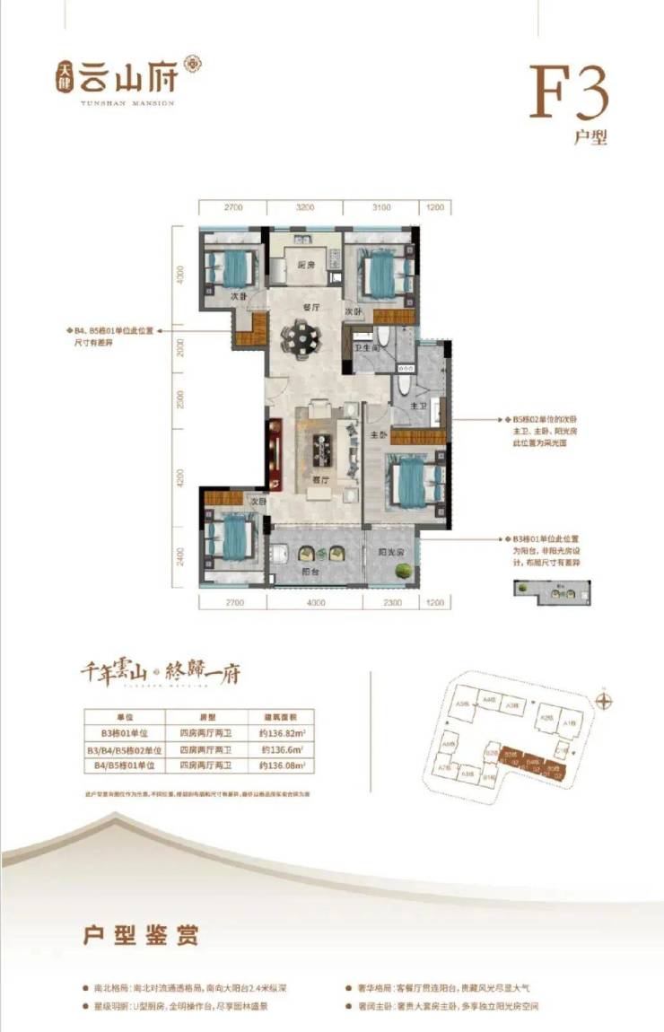5. 132㎡ 四房二卫户型