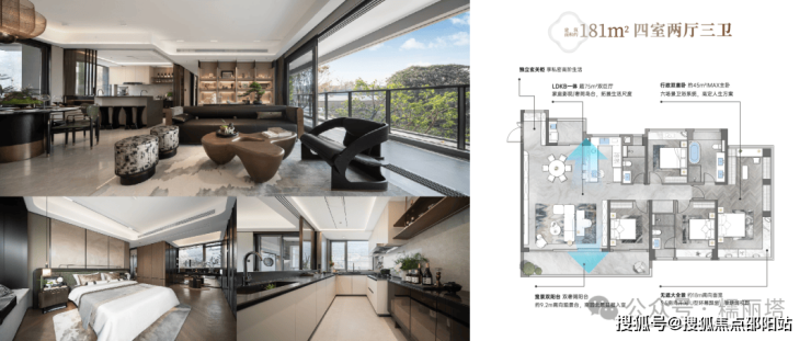 ▻181㎡-四房两厅双套卫约18米南向面宽丨9.2米南向景观阳台丨约75㎡社交巨厅丨星级双套卫